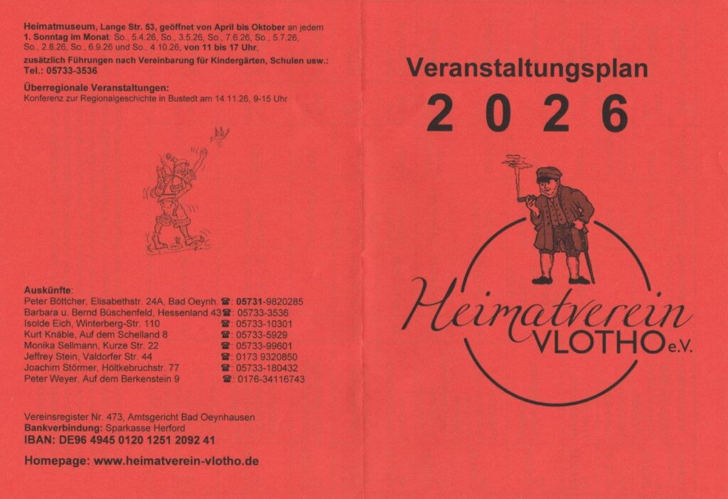 - Präsentation der regionalen Geschichte in unserem sehenswerten Museum, dem HEIMATMUSEUM, im oberen Stockwerk der Kulturfabrik Vlotho, Lange Straße 53 und in unserem Schaukasten an der Langen Straße